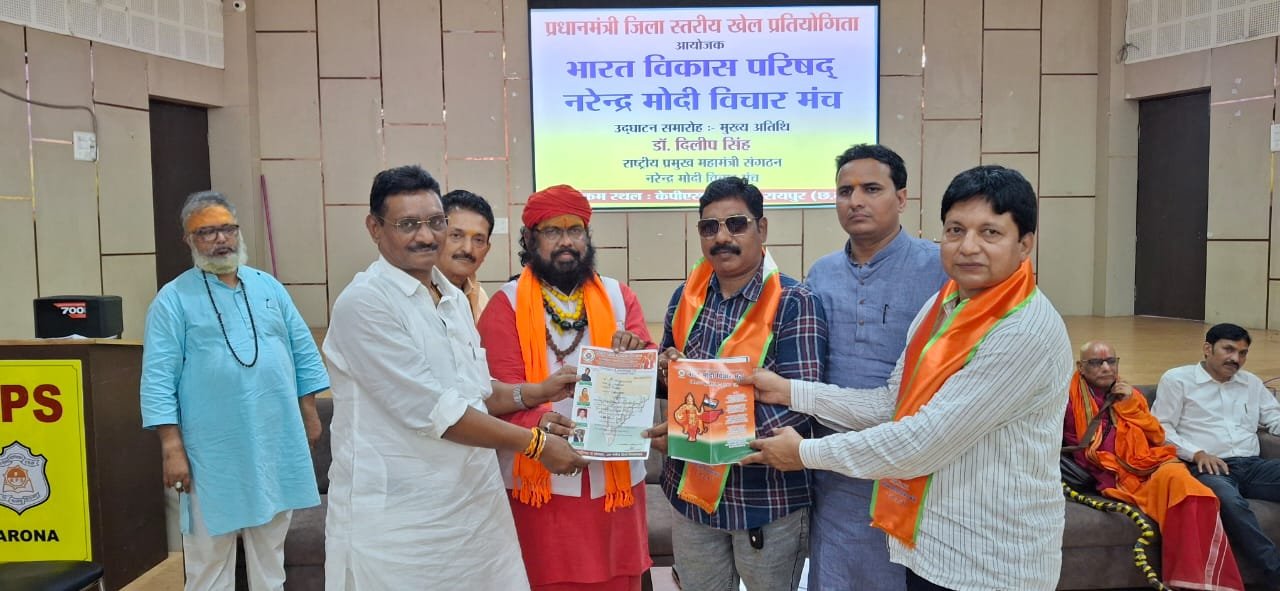 छत्तीसगढ़ की राजधानी रायपुर में नरेन्द्र मोदी विचार मंच के प्रदेश अध्यक्ष नीरज पाण्डे के नेतृत्व में तथा उपभोक्ता फोरम के राष्ट्रीय अध्यक्ष राकेश मिश्रा एवं नरेन्द्र मोदी विचार मंच के राष्ट्रीय उपाध्यक्ष राजकुमार शर्मा के मार्गदर्शन में नरेन्द्र मोदी विचार मंच के राष्ट्रीय मुख्य संगठन महामंत्री एवं छत्तीसगढ़ प्रभारी दिलीप सिंह, अंतर्राष्ट्रीय सन्त बौद्धिक मंच के अंतर्राष्ट्रीय अध्यक्ष स्वामी स्वदेशानन्द ब्रह्म गिरि महाराज, उत्तरप्रदेश के प्रदेश अध्यक्ष ब्रजेश मिश्रा, प्रेस महासंघ के राष्ट्रीय अध्यक्ष शंकधर मिश्रा, अंतर्राष्ट्रीय सन्त बौद्धिक मंच के प्रदेश अध्यक्ष जविंदर सिंग सलूजा, संगठन महामंत्री महन्त जय नारायण मिश्रा , समाज सेवी मन्नु ठाकुर तथा वरिष्ठ पदाधिकारियों की गरिमामय उपस्थित में अतिथियों का सम्मान समारोह कार्यक्रम का आयोजन किया गया। बैठक को संबोधित करते हुए राष्ट्रीय संगठन मुख्य महासचिव दिलीप सिंह ने संगठन की पृष्ठ भूमि पर प्रकाश डालते हुए कहा कि संगठन का मूल उद्देश्य मोदी जी के विचारों को तथा केंद्र सरकार की जनकल्याणकारी योजनाओं को जन जन तक पहुंचा कर देश की जनता को केंद्र सरकार की योजनाओं का लाभ दिलाना है। अंतर्राष्ट्रीय सन्त बौद्धिक मंच के अंतर्राष्ट्रीय अध्यक्ष स्वामी स्वदेशानन्द ब्रह्म गिरि महाराज ने कहा कि अंतर्राष्ट्रीय सन्त बौद्धिक मंच का उद्देश्य देश और विदेशों में सभी सनातनियों को एक मंच पर लाकर भारत और नेपाल को हिन्दू राष्ट्र बनाना है। साथ ही गौ माता को राष्ट्र माता का दर्जा भारत में भी दिलाना और नेपाल में भी दिलाना है। साधु संतों की सुरक्षा के लिए विशेष कानून बनाकर साधुओं की सुरक्षा करना है। स्वामी स्वदेशानंद ने कहा कि हम साधु संतों को संसद में पहुंचा कर देश की संसद को सन्त संसद बनाना चाहते हैं जिसके लिए संगठन के पदाधिकारियों के द्वारा देश और विदेश मे भ्रमण कर सभी सनातनियों को एक मंच में लाने का काम किया जा रहा है। स्वामी स्वदेशानंद ने कहा कि बहुत जल्द नेपाल हिन्दू राष्ट्र बनेगा और नेपाल के बाद भारत भी हिन्दू राष्ट्र बनेगा। रायपुर में नरेन्द्र मोदी विचार मंच के सम्मान समारोह को संबोधित करते हुवे स्वामी स्वदेशानन्द ने कहा कि छत्तीसगढ़ की भूमि के कण कण में आदि शक्ति का वास है जिस तरह उत्तराखंड को देव भूमि कहा जाता है उसी तरह छत्तीसगढ़ को भी आदि शक्ति भूमि कहा जाना चाहिए। आपने नेपाल के युवाओं को बधाई देते हुए कहा कि नेपाल के युवा शक्ति ने भ्रष्ट सरकार का तख्ता पलट कर नेपाल में सनातन को मज़बूत करने का काम किया है। जो बधाई के पात्र हैं। मंच का संचालन राष्ट्रीय अध्यक्ष राकेश मिश्रा एवं छत्तीसगढ़ के प्रदेश अध्यक्ष नीरज पा