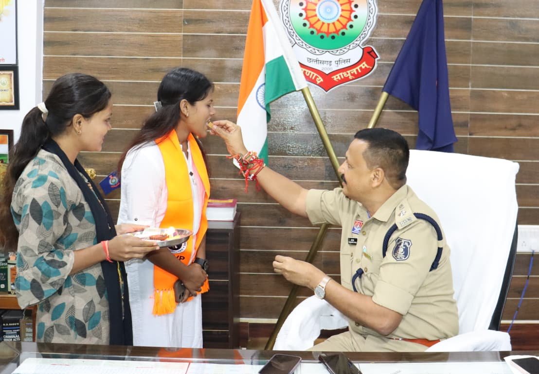 पुलिस अधीक्षक कार्यालय में आयोजित इस भावपूर्ण समारोह में, बहनों ने “आपकी सुरक्षा, हमारा संकल्प” का संदेश देते हुए राखी बांधी। इस अवसर पर पुलिस अधीक्षक धर्मेंद्र सिंह, अतिरिक्त पुलिस अधीक्षक पुष्पेंद्र बघेल, अतिरिक्त पुलिस अधीक्षक  पंकज पटेल, उप पुलिस अधीक्षक आशीष शुक्ला एवं  कृष्ण कुमार चंद्राकर ने राखी बंधवाकर बहनों का आशीर्वाद प्राप्त किया।