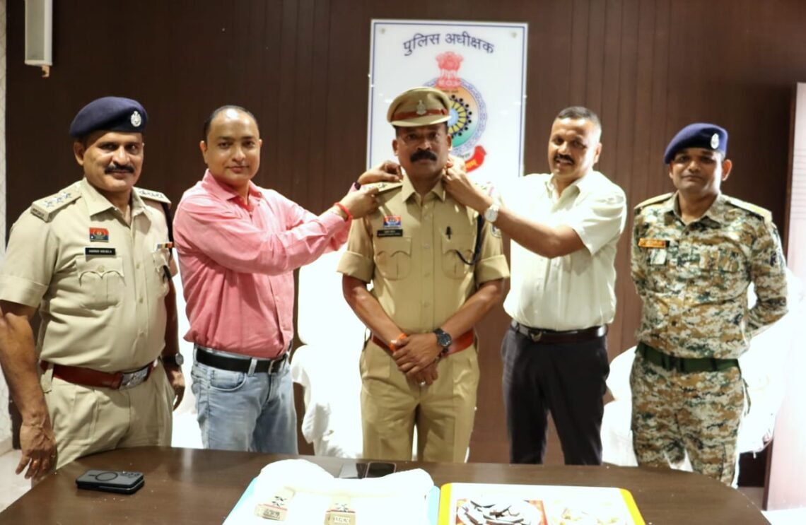 जिन्हें आज दिनांक 20 सितंबर 2025 को पुलिस अधीक्षक कार्यालय कबीरधाम में पुलिस अधीक्षक धर्मेंद्र सिंह द्वारा पदोन्नत अधिकारी के एक कंधे पर स्टार लगाया गया तथा अतिरिक्त पुलिस अधीक्षक पुष्पेंद्र बघेल द्वारा दूसरे कंधे पर स्टार लगाकर उन्हें सहायक उप निरीक्षक के पद से उप निरीक्षक के पद पर पदोन्नति प्रदान कर नई जिम्मेदारी सौंपी गई। इसके उपरांत पुलिस अधीक्षक ने पदोन्नत अधिकारी को मिष्ठान खिलाकर शुभकामनाएं दीं।