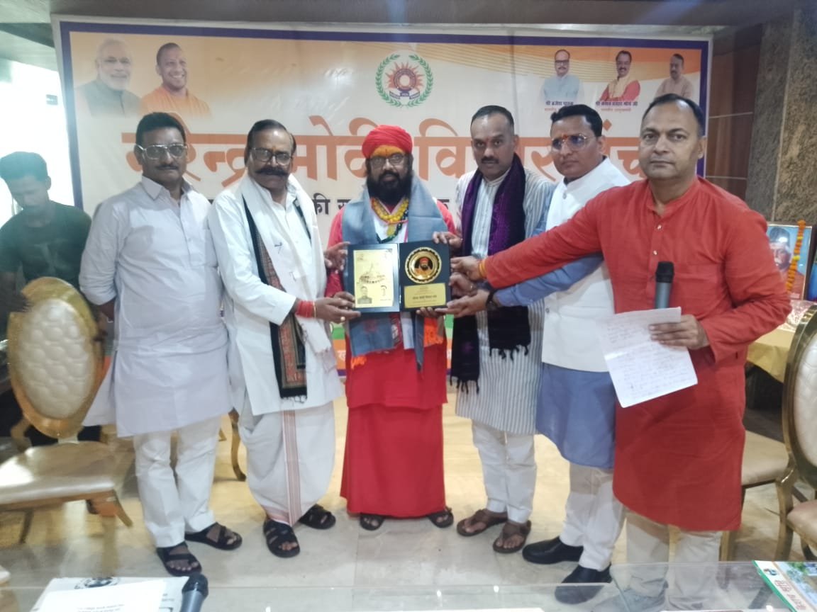 नरेन्द्र मोदी विचार मंच का दो दिवसीय परिवार समन्वय बैठक का आयोजन नरेन्द्र मोदी विचार मंच के राष्ट्रीय संगठन महामंत्री दिलीप सिंह, प्रदेश अध्यक्ष ब्रजेश मिश्रा एवं राष्ट्रीय महामंत्री संजय पाण्डे के नेतृत्व में तथा नरेन्द्र मोदी विचार मंच के राष्ट्रीय अध्यक्ष रवि चाणक्य की अध्यक्षता में उत्तरप्रदेश की राजधानी लखनऊ में आयोजित की गई । इस बैठक में नरेन्द्र मोदी विचार मंच के 28 अनुषांगिक संगठन के अध्यक्षों एवं राष्ट्रीय महामंत्री तथा संगठन महामंत्री ने भाग लिया। इस दो दिवसीय बैठक में 28 अनुषांगिक संगठन के अध्यक्षों एवं राष्ट्रीय महामंत्रियों के निर्णय अनुसार देश के हरेक प्रान्तों एवं विदेशों में भी भ्रमण कर भारत और नेपाल को हिन्दू राष्ट्र बनाने की आवाज को बुलंद करने वाले अंतर्राष्ट्रीय संत बौद्धिक मंच के अन्तर्राष्ट्रीय अध्यक्ष स्वामी स्वदेशानंद ब्रह्म गिरि महाराज को राष्ट्र रत्न सम्मान से सम्मानित किया गया। राष्ट्र रत्न सम्मान से सम्मानित होने पर स्वामी स्वदेशानंद ब्रह्म गिरि महाराज ने कहा कि जो सम्मान मुझे दिया गया है उसके लिए मै सभी पदाधिकारियों का आभार व्यक्त करता हूं। आपने कहा कि आठ माह के अन्तराल में मेरे नेतृत्व में देश के हरेक प्रदेश में तथा नेपाल , भूटान में संगठन का गठन कर संगठन को मज़बूत बनाने के लिए कार्यक्रम किए गए हैं। हम 11 एवं 12 अक्टूबर को गुजरात के गांधी नगर में भव्य कार्यक्रम का आयोजन हमारे प्रदेश अध्यक्ष प्रकाश पांड्या के नेतृत्व में एवं जनवरी माह में प्रदेश अध्यक्ष राकेश झा तथा राष्ट्रीय पदाधिकारियों के नेतृत्व में दिल्ली के जंतर-मंतर में लाखों साधु- संतों एवं बुद्धिजीवीयों को एक मंच पर लाकर भारत को हिन्दू राष्ट्र बनाने, गौ माता को राष्ट्र माता का दर्जा दिए जाने, साधु-संतों की सुरक्षा के लिए विशेष कानून बनाने ऐसे ग्यारह सूत्रीय मांगों को लेकर देश व्यापी आन्दोलन करने जा रहें हैँ। स्वामी स्वदेशानंद ब्रह्म गिरि महाराज ने सभी सनातनियों को एक मंच पर आने का आव्हान करते हुवे कहा कि सभी सनातनी एक मंच पर आकर हिन्दू राष्ट्र की मांग सरकार से करें। क्योंकि “एक रहोगे तो ने रहोगे और बटोगे तो कटोगे” अपने कहा कि हमारा उद्देश्य ही भारत को हिन्दू राष्ट्र बनाना है।